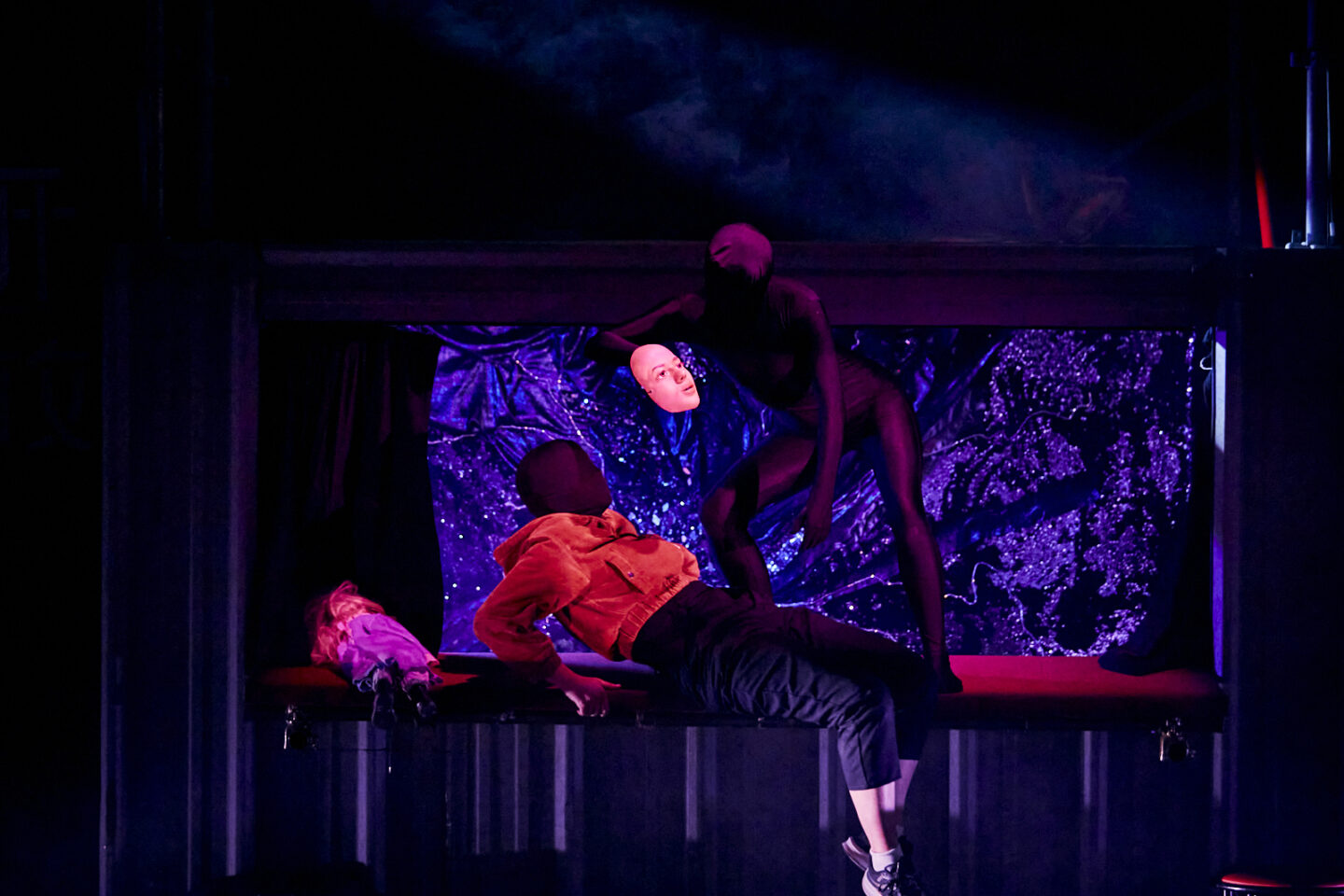 Ce sont eux qui racontent, qui manipulent les marionnettes, jouent le rôle des personnes qu’ils ont croisé, donnent vie aux ombres, et les masques comme les poupées ont le visage des acteurs. Le spectacle, ce sont Petya et Freya qui l’ont créé à la fin de leur histoire pour pouvoir la raconter.